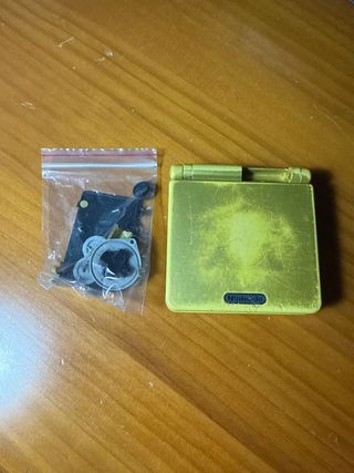 Carcasa de repuesto para Nintendo Game Boy Advance SP. - Carcasa edición Zelda. - Incluye bolsa con componentes- Todo original Se encuentra en mal estado de ahí su precio. Ideal para alguien que busque la carcasa para colección o para intentar salvarla.