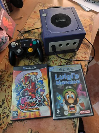Consola Nintendo Game Cube en color morado, junto con dos videojuegos. - Consola Nintendo Game Cube (con todos sus cables) - Mando de control - Juego Viewtiful Joe - Juego Luigi's Mansion Probada y funcionando al 100% NO SEPARO Precio negociable