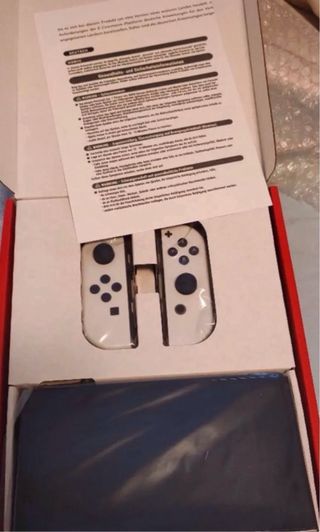 Consola Nintendo Switch modelo OLED en color blanco y negro. Incluye: la base de carga (dock) que se conecta a la tv, funda protectora, case de goma negro, mando inalambrico transparente marca pdp, cable hdmi, cargador original americano, accesorio para poner los mandos y juego minecraft. La consola esta en perfecto estado tanto estetica como en funcionamiento, siempre protegida. Preguntar cualquier duda. Se entrega en mano en Santander para poder probarla. No incluye memoria micro sd y cuenta con juegos. - Pantalla OLED siempre protegida con cristal templado. - Diseño moderno.