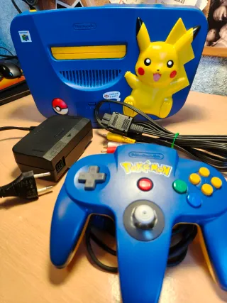 Consola Nintendo 64 con un diseño especial de Pikachu. !!!! En perfecto estado y funcionamiento !!!! - Incluye un mando original Pokémon. - incluye jumper pak original - incluye daptador de corriente - incluye cables AV - funciona el reset y las mejillas