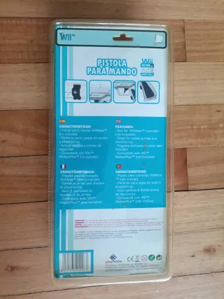 Accesorio tipo pistola para el mando de Nintendo Wii. - Incluye pistola, gatillos adicionales y cierres de seguridad. - Compatible con Wii Motion Plus. - Diseñado para el mando WiiMote. Está sin abrir totalmente nueva . Interesante para coleccionista.
