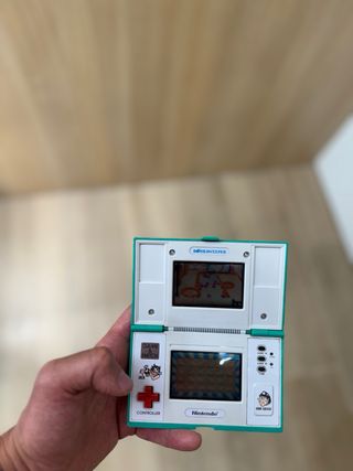 Consola portátil clásica Nintendo de la serie Game&Watch, Wide Screen, en muy buen estado. Pantalla perfecta, sin manchas ni sangrados. Con numero de serie y tapa original. Unicamente las marcas de uso que se aprecian en las fotos.
