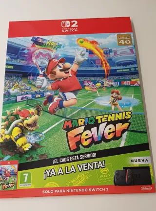 Tríptico promocional de cartón para el juego Mario Tennis Fever.