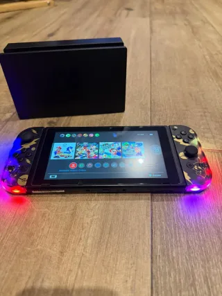 Consola Nintendo Switch con dos mandos y luces LED personalizadas. - Mandos con diseño llamativo. - Luces LED integradas en los mandos.