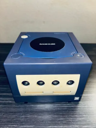Consola Nintendo Gamecube en color morado. Un clásico para revivir tus juegos favoritos. - Diseño compacto y distintivo. - Puertos para mandos y tarjetas de memoria.
