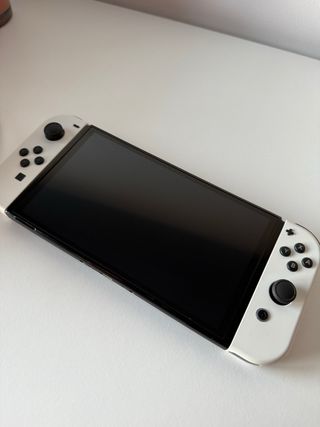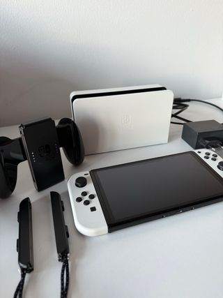 Consola Nintendo Switch modelo OLED en color blanco. Incluye la base de carga, Joy-Cons y accesorios. - Pantalla OLED vibrante. - Base de carga blanca. - Joy-Cons desmontables. Prácticamente sin estrenar (uso de 3 días), por esa razón la vendo.