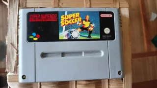 Cartucho del videojuego Super Soccer para Super Nintendo. - Juego de deportes. - Carcasa gris. - Etiqueta con arte del juego y logo de Nintendo. - Envío rápido. - Colección. #Videojuegos #Colección #SuperNintendo #Retro #Vintage