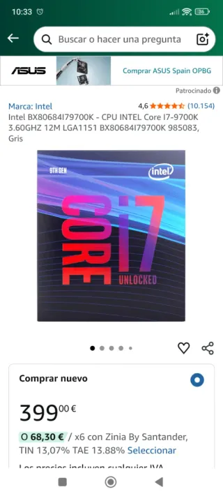 Placa base ASRock B365 Phantom Gaming 4. - Diseño con iluminación LED roja. - Soporte para procesadores Intel. - Conectividad Ultra M.2. I7 9700 k 8 núcleos 48GB de ram DDR4 4 a 2400 mhz