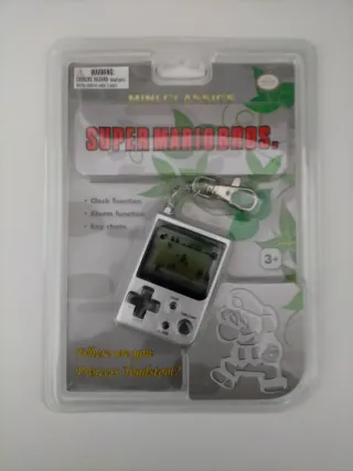 Llavero coleccionable de Super Mario Bros. de la línea Mini Classics. - Función de reloj. - Función de alarma. - Incluye cadena para llaves.