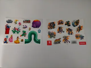 Set de pegatinas de los juegos Super Mario Wonder y Mario Strikers: Battle League. - Incluye personajes y elementos de ambos juegos. - Diseños coloridos y divertidos.