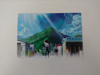 Postal de la serie Loop 8. - Ilustración con paisaje y personajes. - Diseño inspirado en anime.