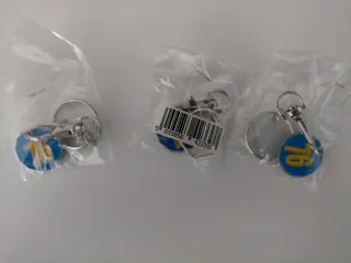 Conjunto de tres llaveros con el diseño de Fallout 76. Cada llavero está empaquetado individualmente. - Diseño redondo con el número 76. - Color azul y amarillo. - Incluye anilla metálica.