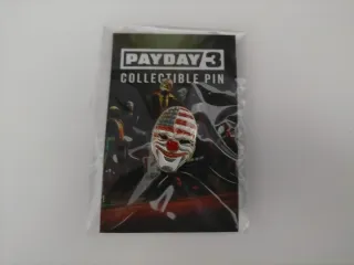 Pin coleccionable del videojuego PAYDAY 3 con diseño de máscara. - Diseño de máscara con bandera estadounidense y detalles de payaso. - Ideal para coleccionistas y fans del juego.