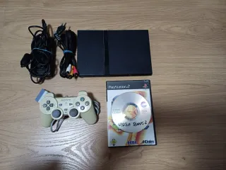 Se vende consola PlayStation 2 Slim en color negro, junto con un mando y el juego Virtua Tennis 2. Lee todo tipo de juegos. Funciona perfectamente. - Incluye consola. - Incluye mando. - Incluye juego Virtua Tennis 2. - Incluye cables de conexión.