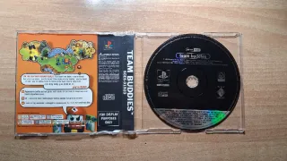 PRECIO NEGOCIABLE Juego de culto para PlayStation 1, Team Buddies en su versión PROMO. El lote incluye: Disco Original (Versión Promo): Diseño oficial en blanco y negro. Presenta marcas superficiales de uso (ver fotos), pero funciona correctamente. Insertos: Carátula frontal con el aviso de contenido y trasera específica de exposición ("For Display Purposes Only"). Caja: Tipo jewel case estándar en buen estado.