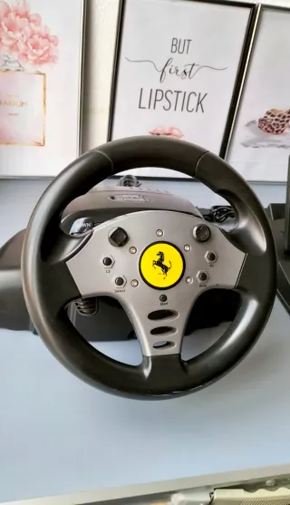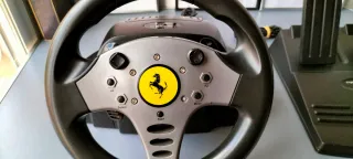Volante de conducción para PlayStation 1 con el icónico diseño de Ferrari. - Logo de Ferrari en el centro. - Botones de control integrados en el volante. - Diseño deportivo.