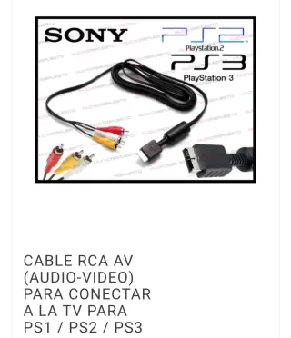 Cable RCA AV (Audio-Video) para conectar tu consola PlayStation a la televisión. Compatible con PS1, PS2 y PS3. - Conectores RCA de audio y video. - Conector específico para consolas PlayStation.