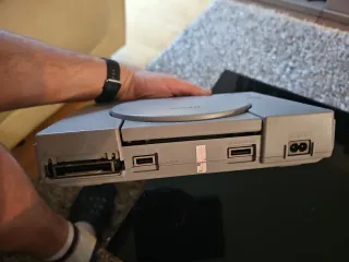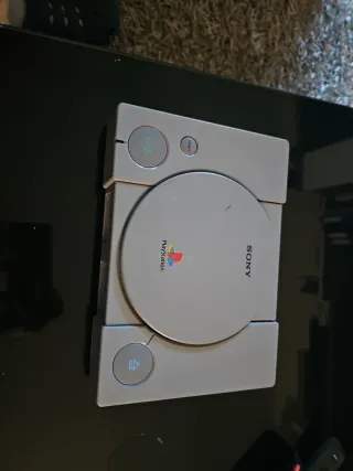 PlayStation 1 en buen estado, con algunos signos de uso. Incluye dos mandos y un volante. ¡Perfecta para revivir la experiencia retro! - Consola PlayStation 1. - Dos mandos. - Un volante. - Algunos juegos incluidos.