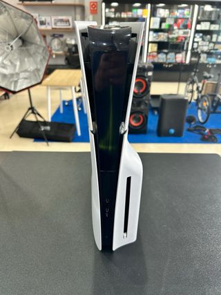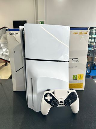 REF: 62189 Consola PlayStation 5 Slim en color blanco, el mando es compatible. No incluye mando original. Artículo en muy buen estado. Realizamos envíos combinados. 1 AÑO DE GARANTÍA Somos Acerto Segunda mano, tienda de compra-venta y empeños, situada en C/ Santiago de Compostela 20, Roquetas de Mar, Almería. Hacemos envíos en península, Baleares y la mayor parte de Europa. Los artículos reflejados en este anuncio tienen el IVA incluido y está acogido al régimen especial de bienes usados.