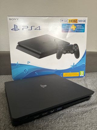 Vendo PlayStation 4 Slim 500GB (Jet Black) en perfectas condiciones, funciona todo correctamente. Incluye: ✅ Consola PS4 Slim 500GB (perfecto estado) ✅ 1 mando DualShock 4 en buen estado ✅ Cable de corriente + cable HDMI ✅ Caja original (la caja tiene algunos cortes y golpes del uso/almacenaje, pero la consola está impecable) Siempre cuidada, sin golpes y muy bien conservada. Se puede probar sin problema. 📍Entrega en mano