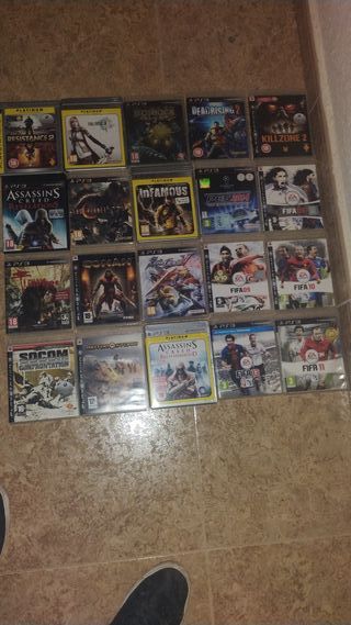 Se vende lote de 20 videojuegos para PlayStation 3. - en buen estado no tengo bizum si quieres presencialmente precio negociable - Final Fantasy XIII - BioShock 2 - Dead Rising 2 - Killzone 2 - Assassin's Creed: Revelations - The Last of Us - Infamous - PES 2014 - FIFA 09 - SOCOM: Confrontation - Conan - Star Wars: El Poder de la Fuerza - FIFA 10 - Assassin's Creed: Brotherhood - FIFA 11