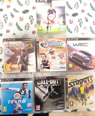 Lote de 6 videojuegos para PlayStation 3. - FIFA 15 - Uncharted 3: La Traición de Drake - Virtual Tennis 2009 - WRC 5 - FIFA 19 Legacy Edition - Call of Duty: Black Ops II - FIFA Street 3 - Precio por unidad.