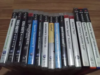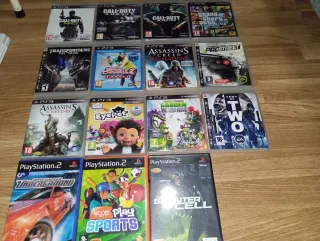 16 videojuegos para PlayStation 3 y PlayStation 2. 6 € la unidad - Call of Duty: Modern Warfare 3 - Call of Duty: Ghosts - Call of Duty: Black Ops - Transformers: The Game - Sports Champions 2 - Assassin's Creed: Revelations - Assassin's Creed III - EyePet - Plants vs. Zombies: Garden Warfare - Grand Theft Auto V - Need for Speed: ProStreet - Army of Two - Need for Speed: Underground - EyeToy: Play Sports - Tom Clancy's Splinter Cell - Need for Speed: ProStreet