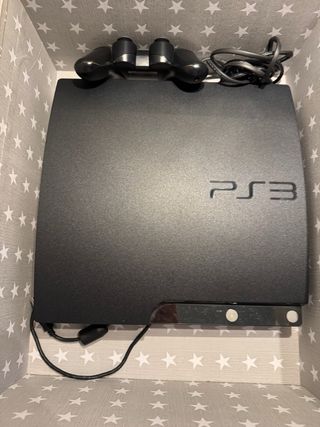 PlayStation 3 versión retrocompatible con PS2 y PS1, en buen estado, con 250 GB de disco duro. Funciona perfectamente y esta recién restaurada y con el SO actualizado. Incluye dos micrófonos, tres mandos (uno de ellos, Dualshock), mando a distancia, Play TV y cámara PlayStation Eye.