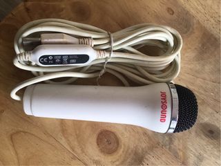 Micrófono USB de la marca JOYSOUND, compatible con consolas como PlayStation 3, PlayStation 4 y Wii. Ideal para juegos de karaoke y otras aplicaciones. - Conexión USB. - Diseño ergonómico. - Cable blanco. Lo entrego en metro Carmel o envío por Inpost