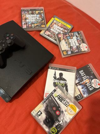 Consola PlayStation 3 en color negro. - Incluye dos mandos (uno de ellos no es original). - Incluye cable de alimentación. - Regalo 6 juegos
