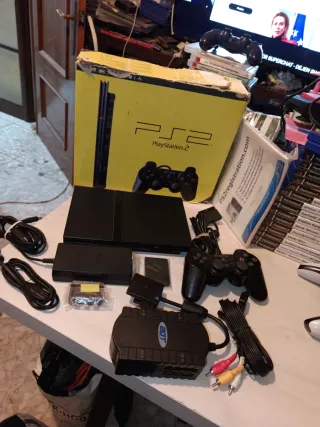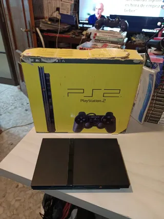 Consola PlayStation 2 Slim en su caja original. Incluye todos los cables, memory Card y un mando original. - Mando DualShock 2. - Cable de alimentación. - Cable AV. - Adaptador de corriente. - Caja original. - Multitap. - Panfleto de red y manual Ingles, falta el español. Los modelos coinciden de consola, manual y caja. Se envía por wallapop o en mano en Chiclana más videojuegos en mi perfil. Tags: Game gamer juego play3 play2 play1 PlayStation ps psx retro colección coleccionista coleccionismo Sony.