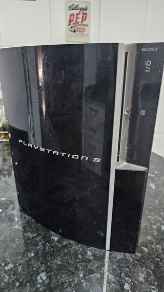 Consola PlayStation 3 en color negro. - Diseño elegante y compacto. - Superficie lisa y resistente. Contiene todos los cables originales y el mando(no original). Tiene varios años, evidentes signos de uso pero nada exagerado.