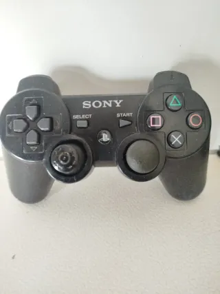 Mando original de PlayStation 3 en color negro usado y funcionando correctamente, con una pequeña fisura como se ve en la última foto pero no afecta al funcionamiento. - Diseño ergonómico. - Botones de acción y direccionales. - Sticks analógicos. No se aceptan devoluciones al tratarse de un producto con defecto.