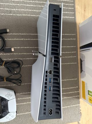 Playstation 5 SLIM Edición Digital con 1TB de almacenamiento. - Se vende por no usar - Ningun fallo. - Limpieza realizada hace 3 meses - Incluye mando DualSense. En perfectas condiciones. Sin drift. - Incluye cables de conexión.