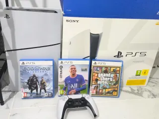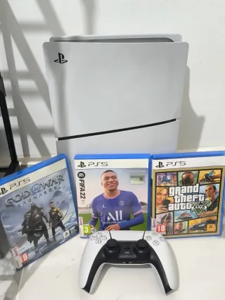 PlayStation 5 Slim con 1TB de memoria (Se vende por no usar) Se puede ver y probar sin problemas PS5: CON 6 MESES DE USO CON SU CAJA ESTA PRACTICAMENTE NUEVA MUY CUIDADA MANDO: Sin drift y sin ningún problema en ningún botón ni nada - Mando DualSense incluido. - God of War Ragnarök - FIFA 22 - Grand Theft Auto V
