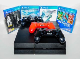 PlayStation 4 1TB en muy buen estado, con tres mandos originales, cables, caja y 6 juegos. Todo funciona a la perfección. JUEGOS: 1. Final Fantasy VII 2. Final Fantasy XV 3. Te Last of US 4. Uncharted collection 5. Fifa 17 6. Fifa 18