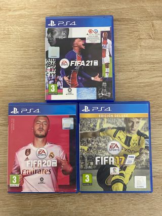 Se vende lote de tres Fifa para PlayStation 4. - FIFA 21 - FIFA 20 - FIFA 17 ⚪️Estado: Usados, pero funcionan perfectamente. El Fifa 17 hace algo de ruido, pero funciona. ⭕️ Por separado: 5€ cada uno.