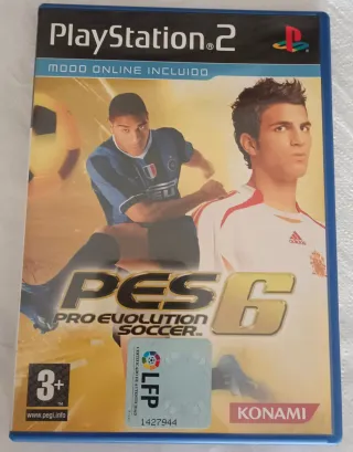 Videojuego de fútbol Pro Evolution Soccer 6 para PlayStation 2. Incluye modo online. - Carátula con jugadores. - Clasificación PEGI 3+.