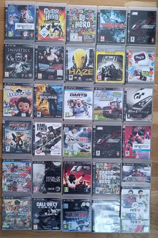 Colección de 30 videojuegos para PlayStation 3. - Assassin's Creed III - Call of Duty 4: Modern Warfare - Call of Duty: Modern Warfare 2 - Darksiders - Colin McRae: DiRT 2 - Everybody's Golf: World Tour - Far Cry 3 - Gran Turismo 6 - God of War III - Homefront - Killzone 2 - L.A. Noire - LittleBigPlanet - Mass Effect 3 - Max Payne 3 - ModNation Racers - NBA 2K13 - Resistance: Fall of Man - Pro Evolution Soccer 2011 - Tomb Raider - Undisputed - Uncharted: Drake's Fortune - Virtua Tennis 3