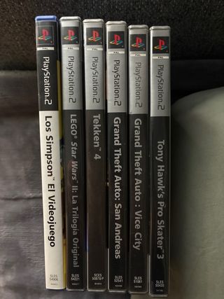 Lote de 6 videojuegos para PlayStation 2. - Los Simpsons: El Videojuego - Grand Theft Auto: Vice City (Platinum) - Tony Hawk's Pro Skater 3 (Platinum) - LEGO Star Wars II: La Trilogía Original (Platinum) - Tekken 4 (Platinum) - Grand Theft Auto: San Andreas (Platinum)