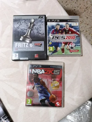 Videojuegos para PlayStation 3. - PES 2010: Pro Evolution Soccer. - NBA 2K15. - Fritz 6: Juego de ajedrez para PC CD-ROM. 2€ cada juego.