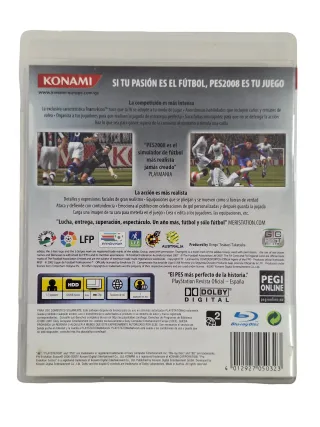 Videojuego de fútbol Pro Evolution Soccer 2008 para PlayStation 3. - Juego de deportes. - Desarrollado por Konami. - Incluye instrucciones