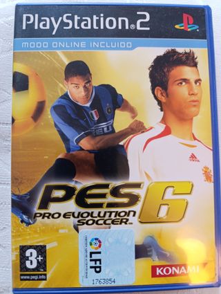 Videojuego de fútbol Pro Evolution Soccer 6 para PlayStation 2. - Modo online incluido. - Clasificación PEGI 3+.