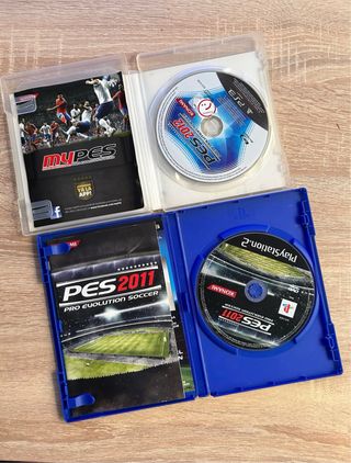 Dos videojuegos de fútbol para consolas PlayStation. - Pro Evolution Soccer 2012 para PlayStation 3. - Pro Evolution Soccer 2011 para PlayStation 2.