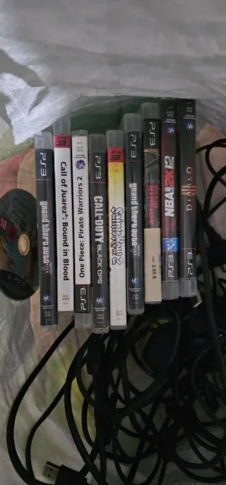 Se vende consola PS3 Slim modelo CECH3004A de 160 gb con accesorios y juegos. - Incluye 2 mandos (1 original y 1 compatible). El mando rojo aunque funciona hay un tornillo que no se le puede poner porque tiene la rosca mal. Si lo quieres con 4 mandos el precio es 160. - Incluye 12 juegos: PES 2014, Pro Evolution Soccer 2018, FIFA 10, FIFA 13, Call of Duty Black Ops, Grand Theft Auto, Battlefield 3, NBA 14. - Se incluyen 2 cables para mandos, 1 cable de alimentación y 1 cable hdmi. Más cosas en mi perfil para hacer un pack.