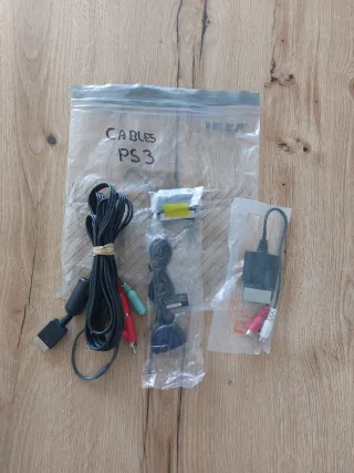 Lote de cables para PlayStation 3. - Cable AV con conectores RCA (rojo, blanco, amarillo). - Cable de alimentación. - Adaptador SCART.