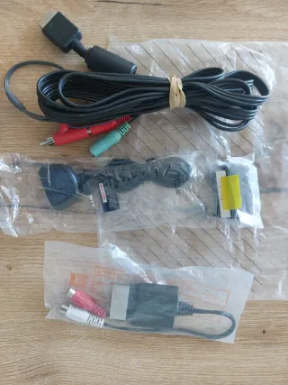 Conjunto de cables para PlayStation (1,2 y 3) Tengo más, preguntar. - Cable AV con conectores RCA (rojo, blanco, amarillo). - Cable de alimentación. - Adaptador SCART.