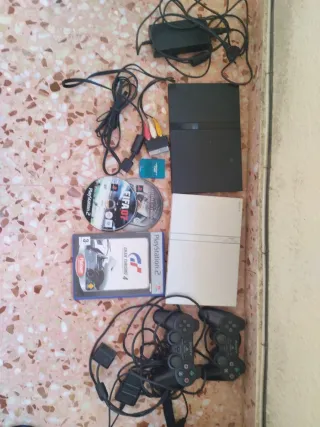 Se venden dos consolas PlayStation 2, una negra y otra plata, ambas en funcionamiento. Precio negociable por privado. - Incluye dos mandos, los he probado y no funcionan, aunque uno de ellos enciende la luz roja. - Incluye cables de conexión y alimentación. - Incluye juegos: FIFA 07, Gran Turismo 4 y Medal of Honor. - Incluye tarjeta de memoria. Memory Card. Las dos funcionan bien, he probado los 3 juegos y excepto el Medal of Honor que lo lee pero se queda pillado, funcionan genial.