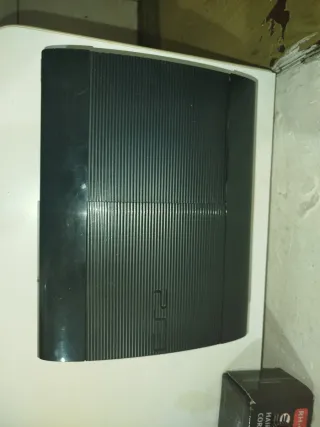 PlayStation 3 Super Slim en color negro. Consola original de Sony con diseño compacto y tapa superior deslizante. Se encuentra en buen estado general, con detalles estéticos normales por el uso (ligeros rayones visibles en la superficie brillante), sin golpes ni daños estructurales. Funciona correctamente y es una excelente opción tanto para jugar como para colección. no trae ni mando ni cables
