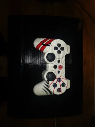 Consola PlayStation 3 Super Slim con disco duro de 500GB. - Modelo Super Slim. - Capacidad de 500GB. -Mando original como nuevo y mando compatible como nuevo. Un cable de carga. - incluye HDMI y adaptador. No tengo la caja original. Puedo negociar añadir juegos de mi perfil con un ajuste de precio. Pequeñas zonas rayadas que se ven en la foto , funciona perfectamente. Actualizada solo a versión que permite modificar. Ideal para instalar copias de seguridad , probado y funcionando (no se incluye ).